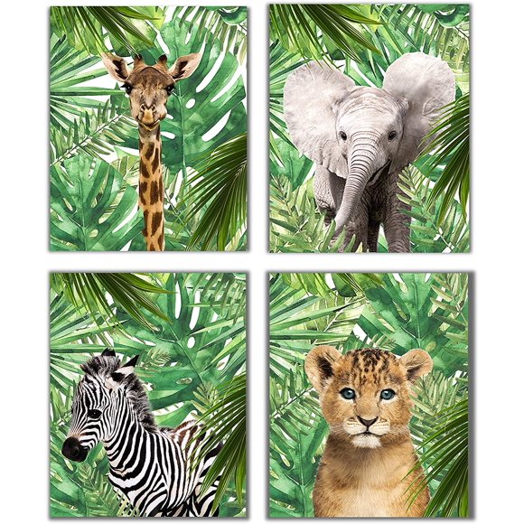 MARIA Jungle Safari Baby Animals Nursery Decor Fine art | Ready of 4 (Unframed) Wall Prints 8x10